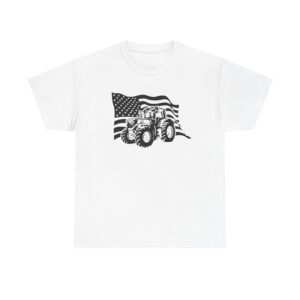 This patriotic American flag tractor shirt is for tractor driving men or tractor driving women. The unisex heavy cotton tee